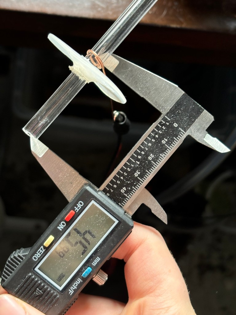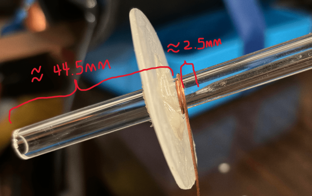 44.5mm Distance from cathode to end of tube. I later added more effective surface area from adding more glue disks.