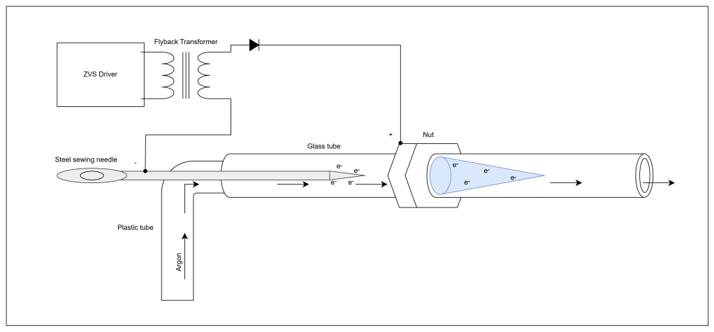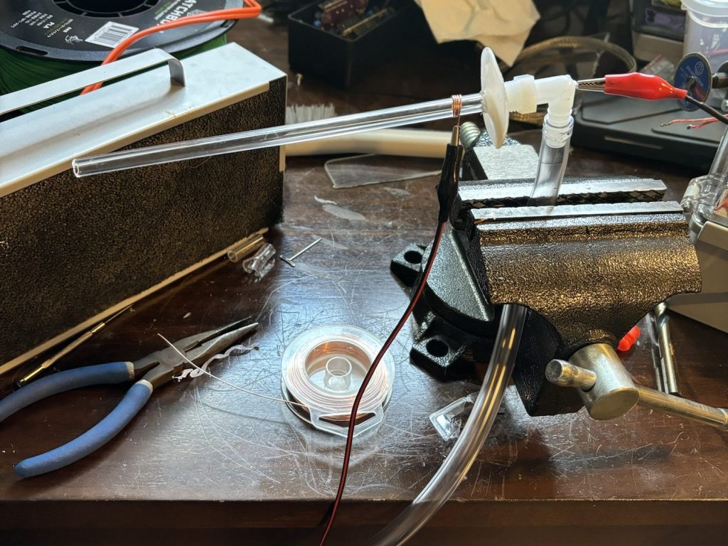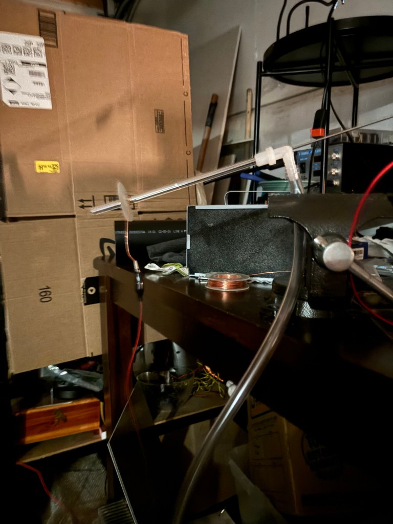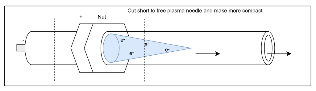I then cut the glass shorter to allow for the plasma to exit into the open air. Technically it worked…