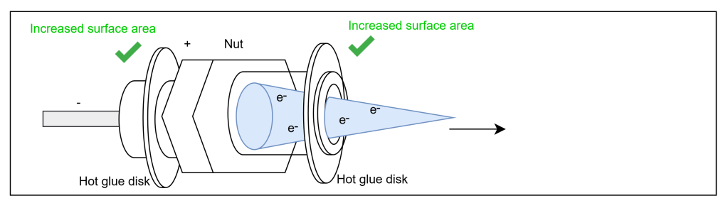 The needle works great except for a lot of coronal discharge. Improving the hot glue disks and insulating the anode wire